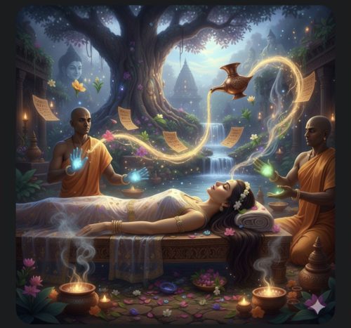 Soins par l’Ayurvéda, médecine holistique originaire de l’Inde pour équilibrer vos énergies et les harmoniser avec votre corps, l’esprit et l’âme par le biais d’une alimentation saine et adapté à votre organisme, avec l’utilisation des plantes pour détoxifier votre corps, soigner des infections telles que le rhume ou soins du visage, pour cheveux, etc ...
